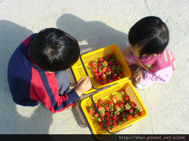 採草莓,記得不可以觸碰到果實!要從梗的地方拿及剪斷,避免傷害到果實。
