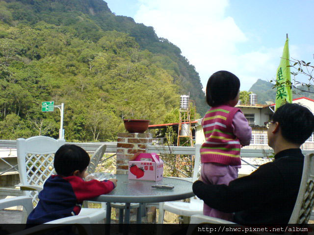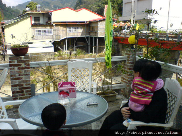 他剛好有一個露台就建在橋樑旁邊,所以可以看見遠山近水及聽見潺潺流水聲。