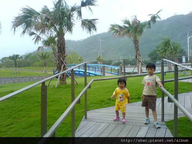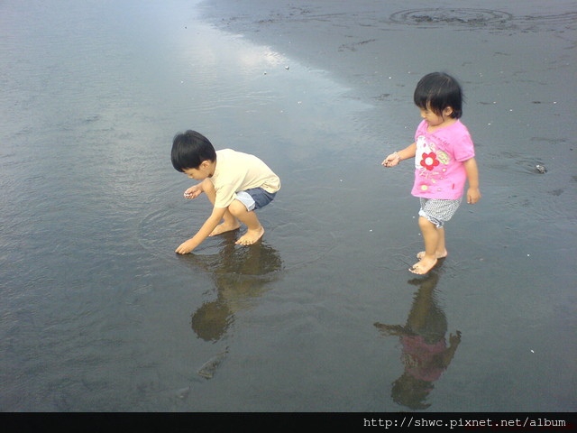 我們決定下車,讓兩個小朋友玩玩水跟沙子。