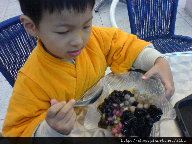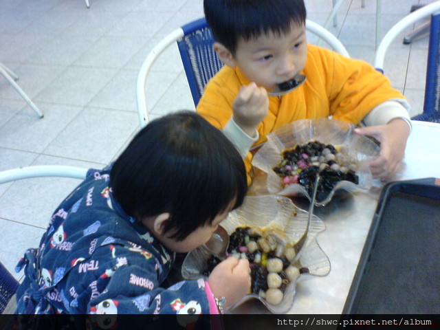 可能是寒流的關係,所以大家多點熱湯的,只有我們母子三人捧著兩碗冰。