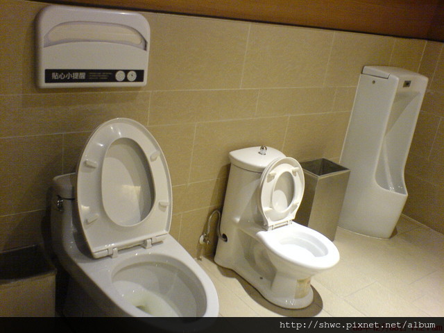 不止空間寬敞,而且有大小馬桶跟小便斗。最重要的是還有大小洗手台跟換尿布台。