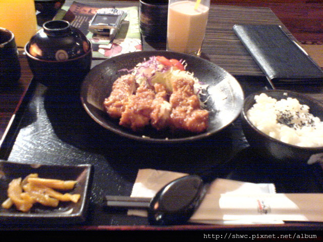 老公點了招牌餐炸豬排飯,我則是點炸雞腿排。
