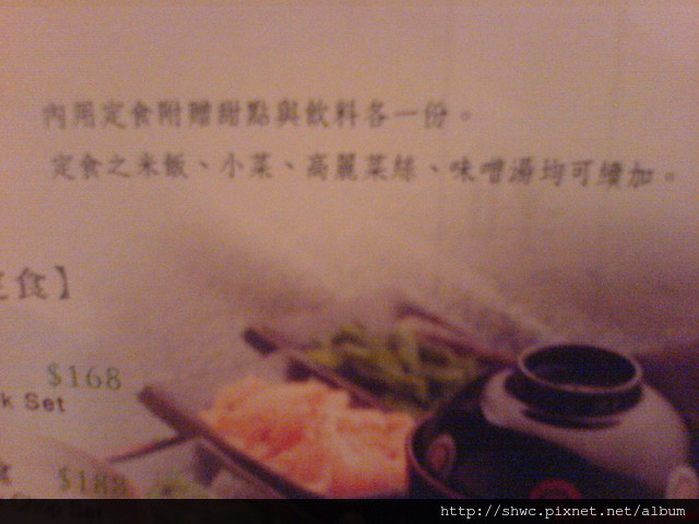 內用定食即贈甜點(冰淇淋跟麻糬)與飲料(三種)各一份。定食之米飯,小菜,高麗菜絲及味增湯都可以免費續加!!