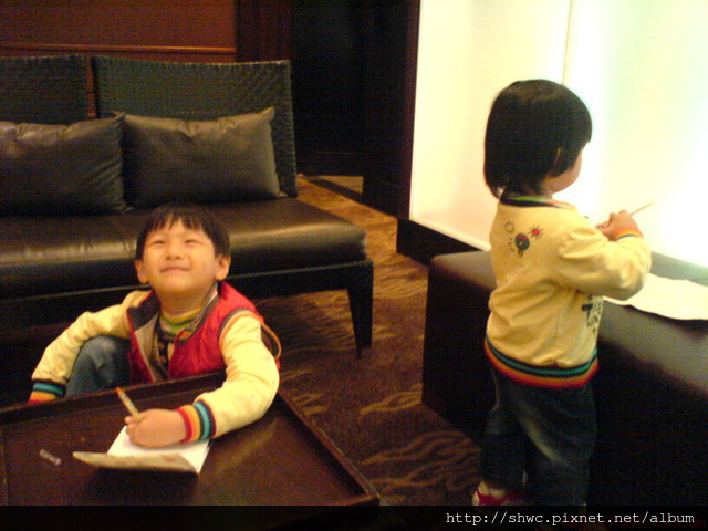 既然時間還早,我就讓他們在這邊玩。接待小姐過來告訴我們可以到旁邊的窗台休憩區看風景。