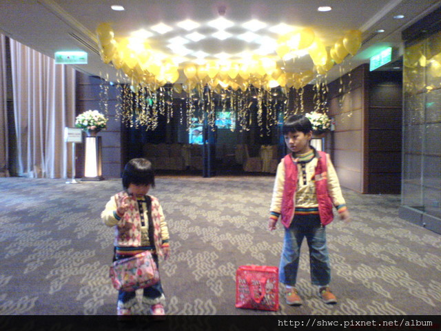 沒辦法,我只好帶著兩個孩子先到會場等了。