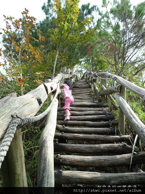 果然下坡才是高難度的,尤其坡度那麼陡,對小的孩子來說要抓繩子欄杆,又要注意腳步不會滑下去,真的不容易。